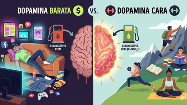 A dopamina barata vicia e drena sua motivação, enquanto a dopamina do esforço constrói resiliência. Descubra como a neurociência explica essa diferença e aprenda a recuperar seu foco.
